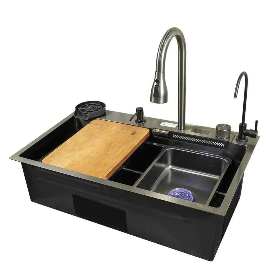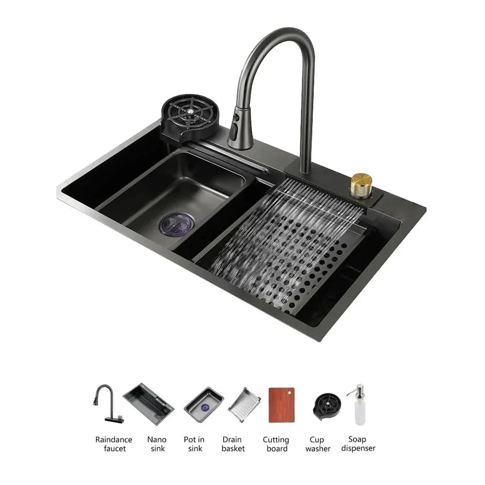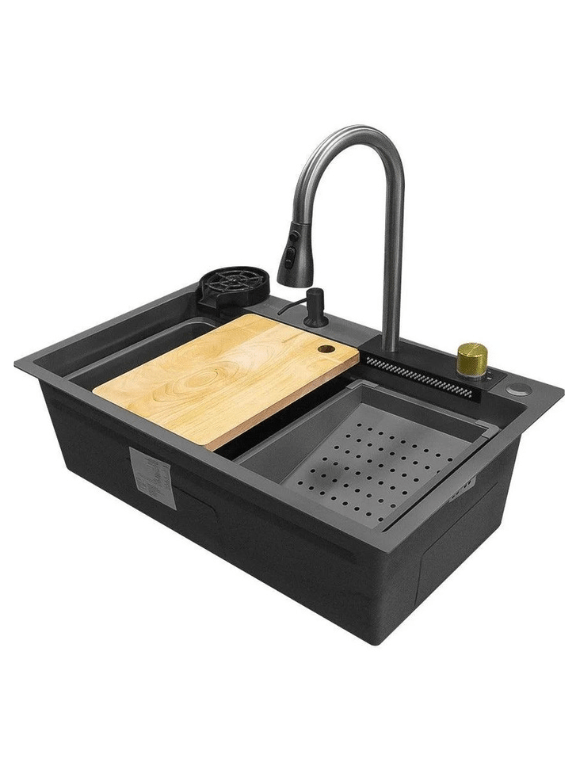 اكتشفي حوض المطبخ السمارت المتكامل الذي يجمع بين الأناقة والوظائف المتعددة. مصنوع من ستانلس ستيل 304 مع طبقة نانو سيراميك مقاومة للخدوش، ويأتي بمقاس مثالي 75 × 46 سم.