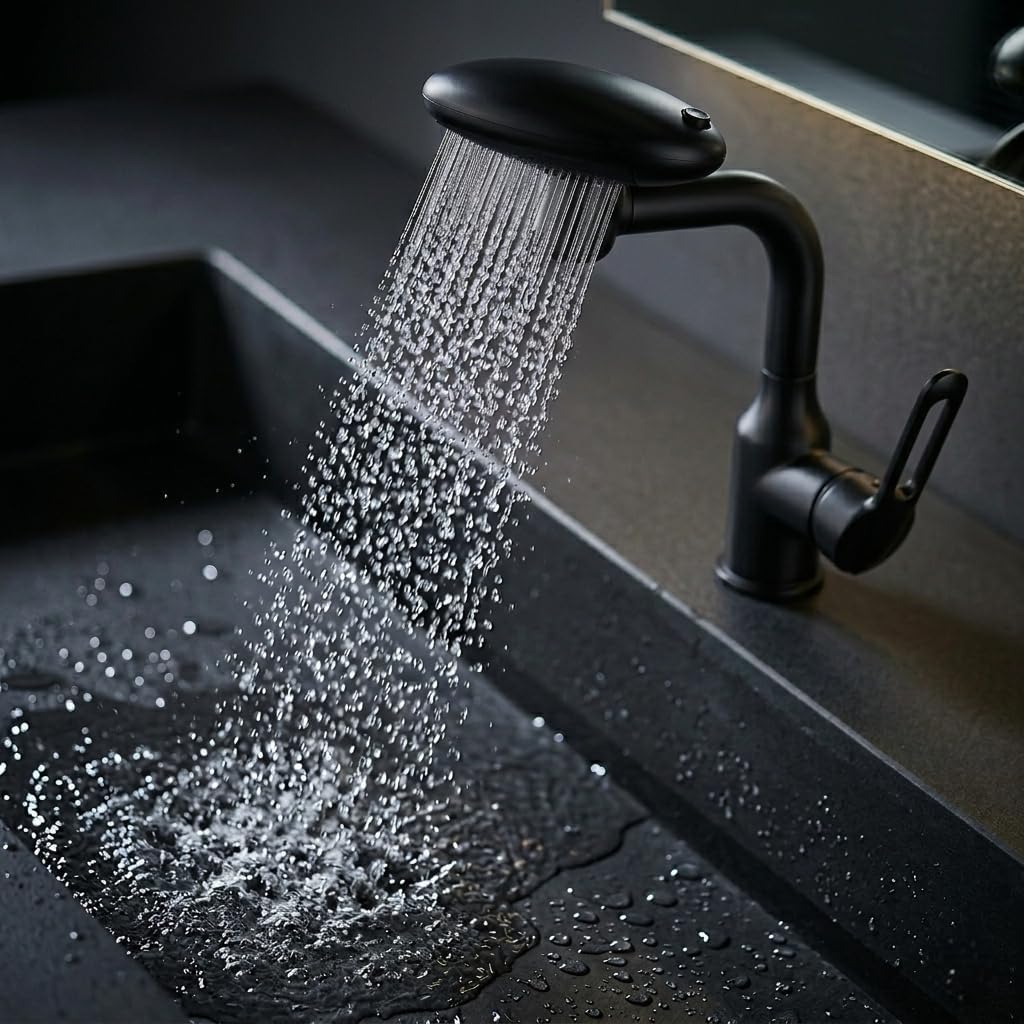 - نظام سحب لأسفل (Pull-Down): خرطوم مرن عالي الجودة يسحب بسهولة ويعود تلقائياً