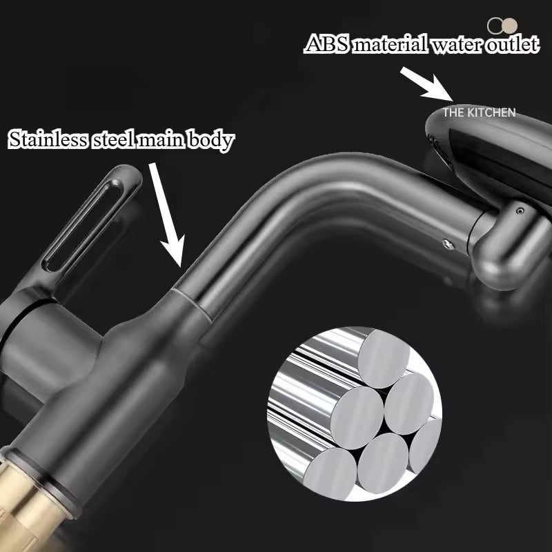 هل تبحثين عن صنبور مطبخ يجمع بين الفخامة العصرية والأداء الاحترافي؟ إليك صنبور المطبخ المتعدد الوظائف الأكثر طلباً حالياً – تصميم أوروبي أنيق يحتوي على 4 أوضاع رش مختلفة، بما في ذلك وضع الشلال (Cascata) الواسع، ، ودوران كامل 360 درجة.