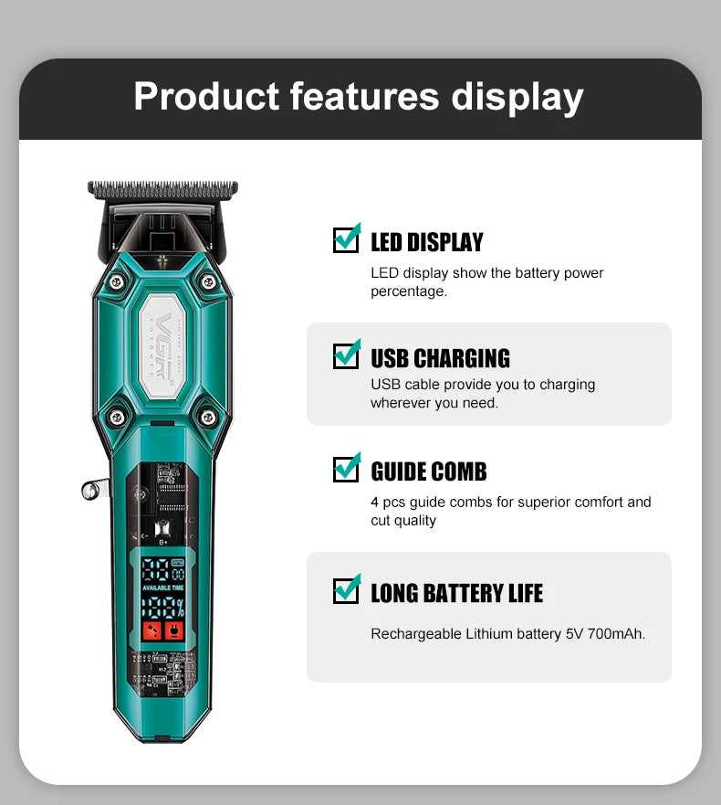 ماكينة الحلاقة الاحترافية VGR V900: قوة، دقة، حرية!